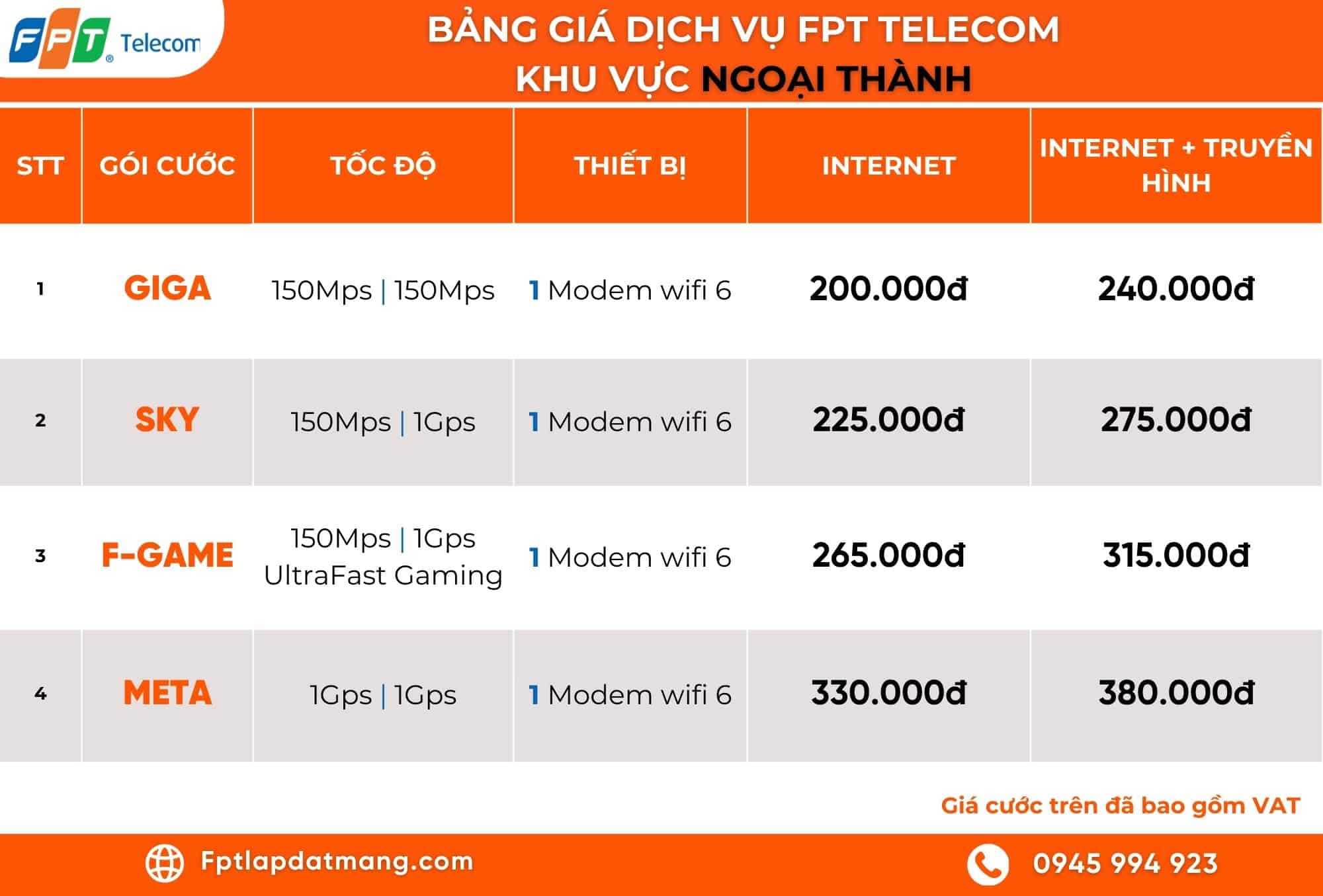 Khách liên hệ qua form đăng ký hoặc liên hệ trực tiếp hotline: 0945 994 923. Tại đây quý khách sẽ được nhân viên tư vấn rõ giá cước và chính sách khuyến mãi hiện hành của FPT theo từng khu vực.